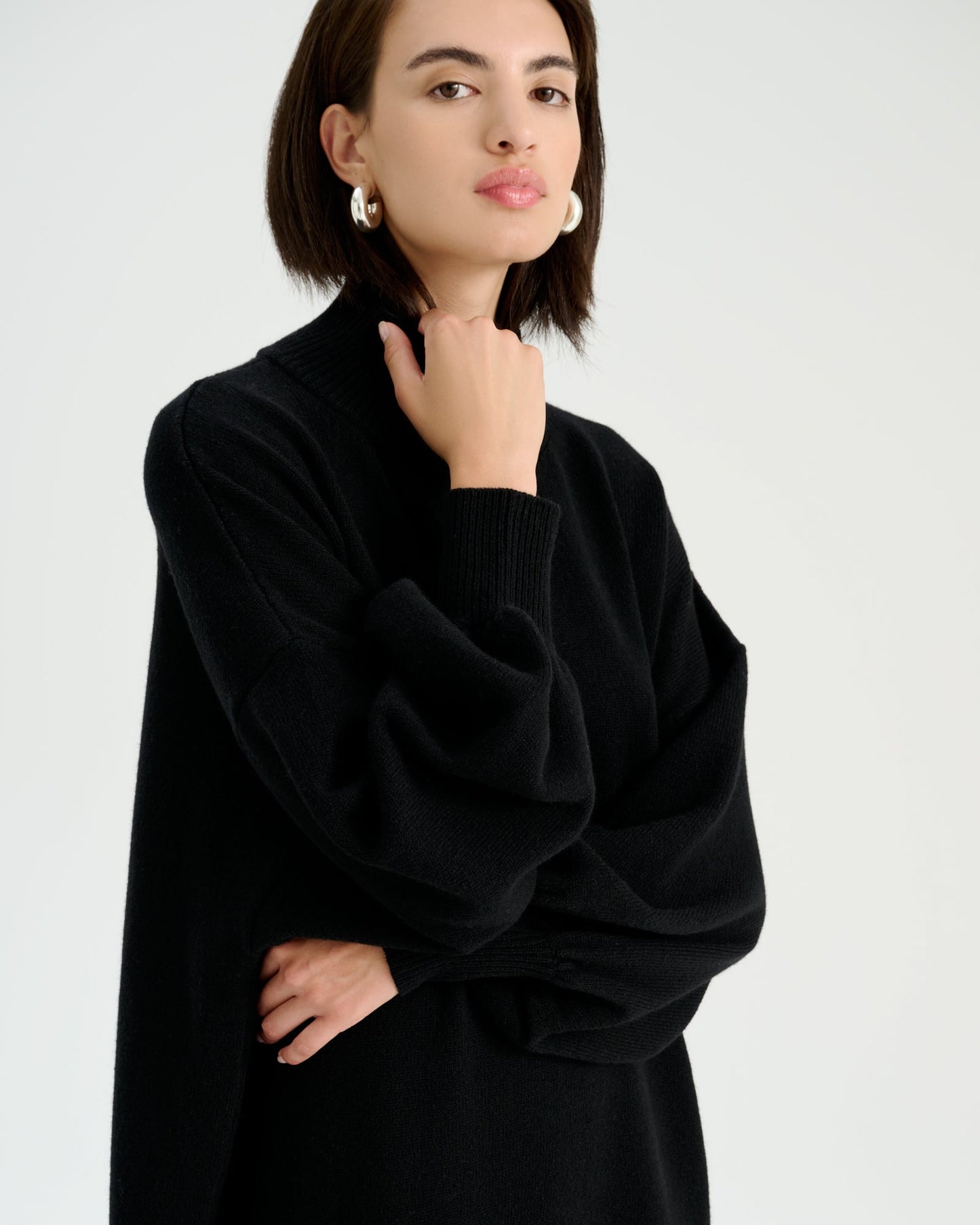 • voluminöse Ärmel mit einem schmalen, hohen Ärmelabschluss
