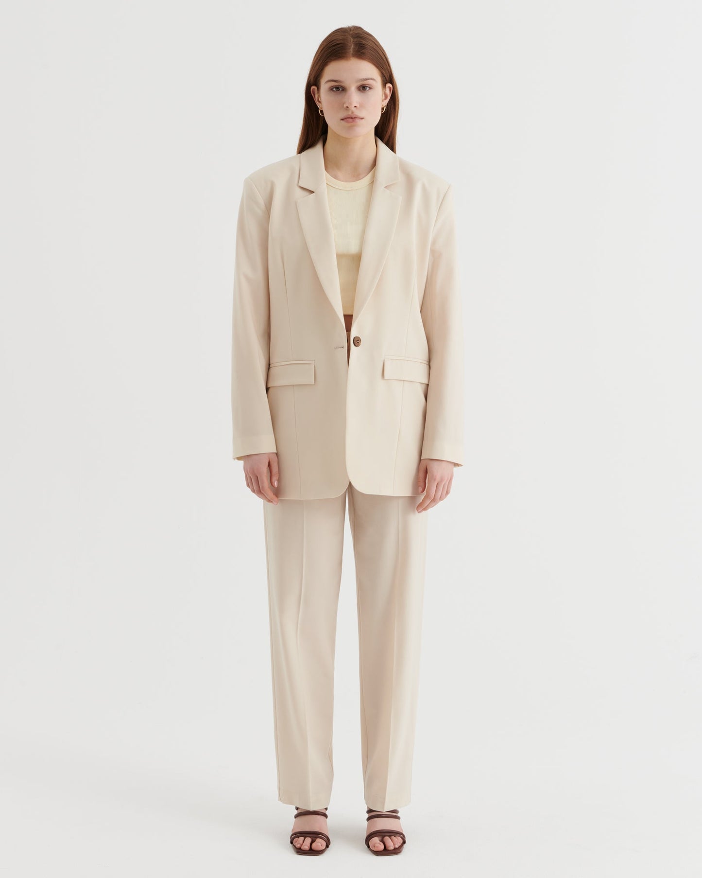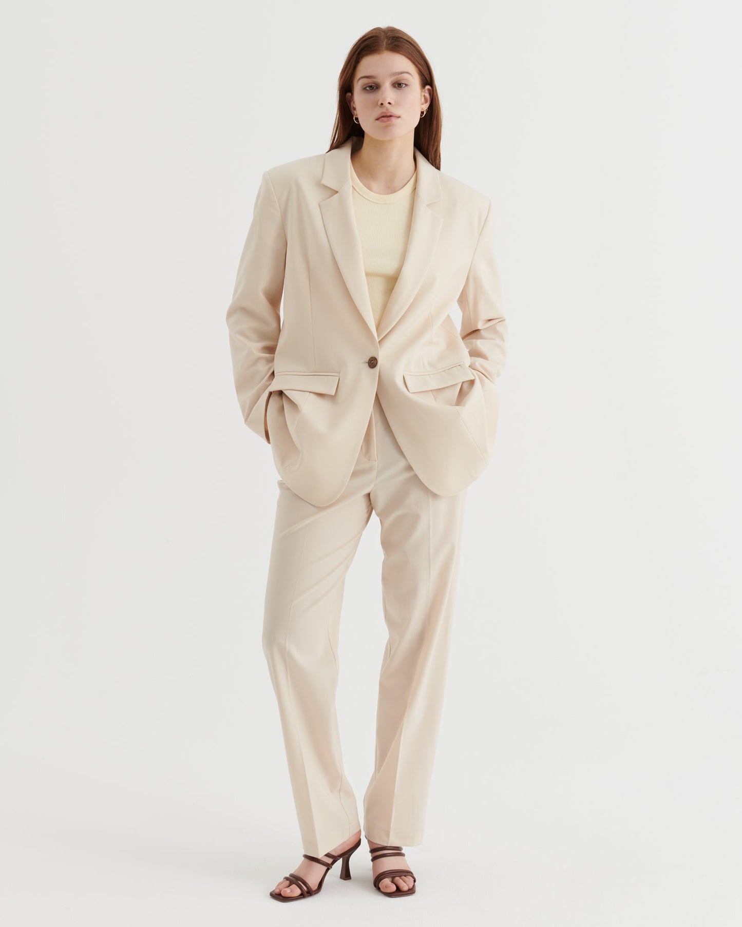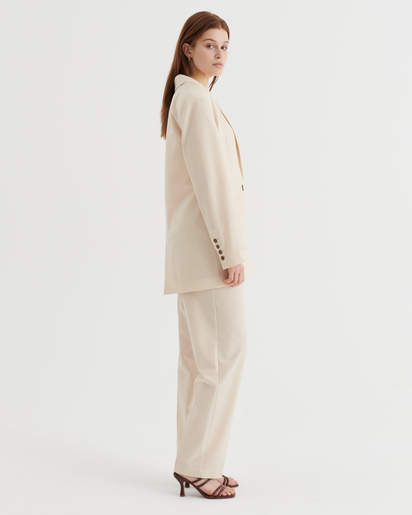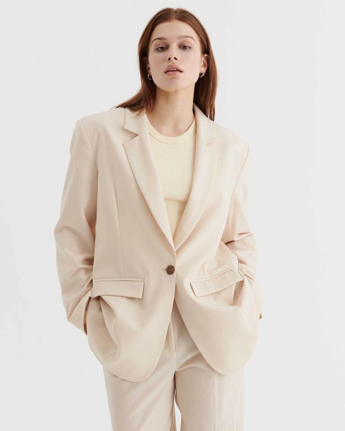 • hinten Paspeltaschen mit einem Knopf aus Kokosnuss-Schale
