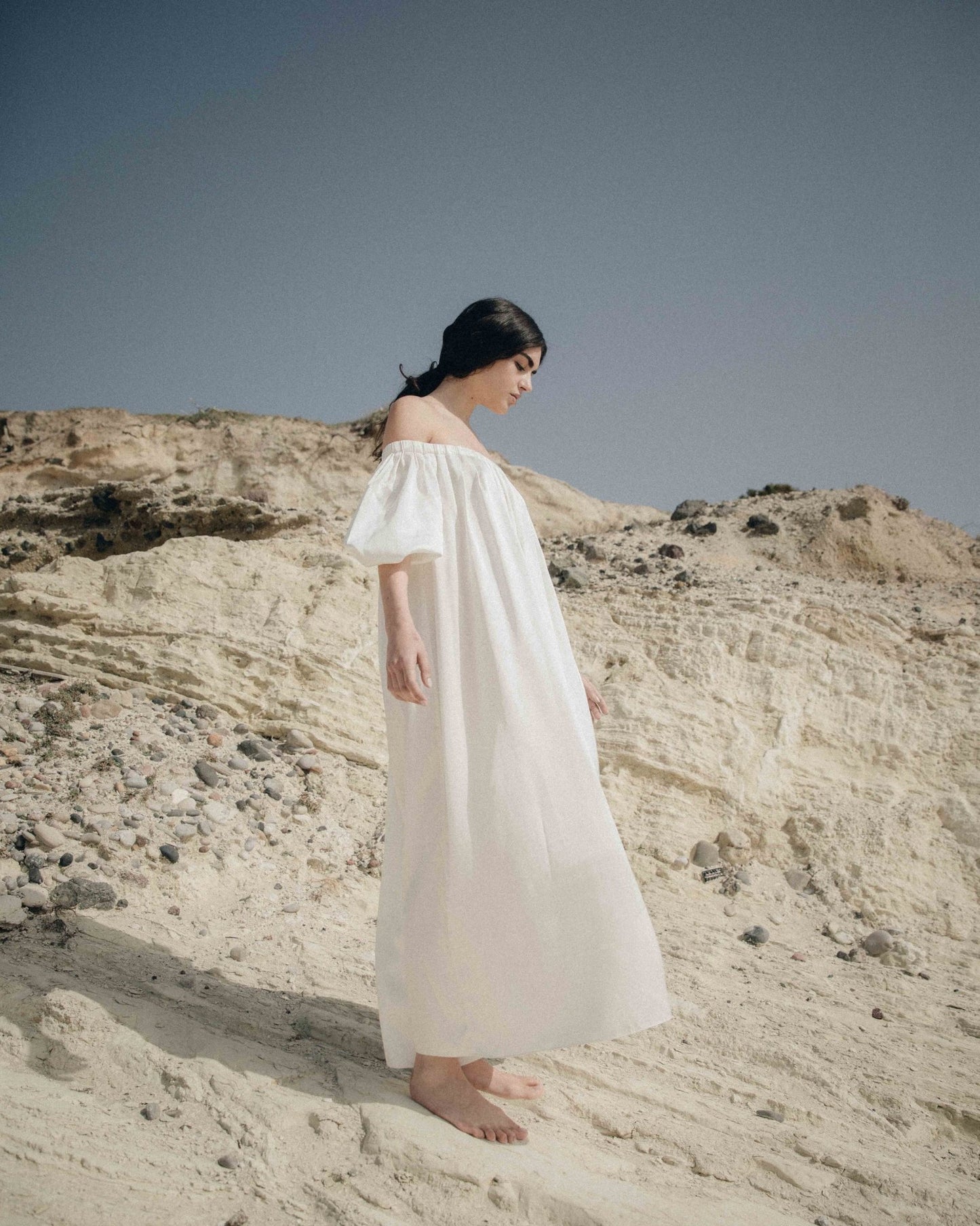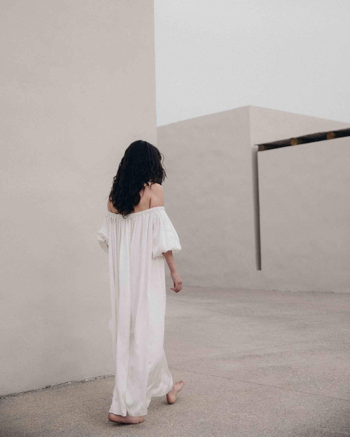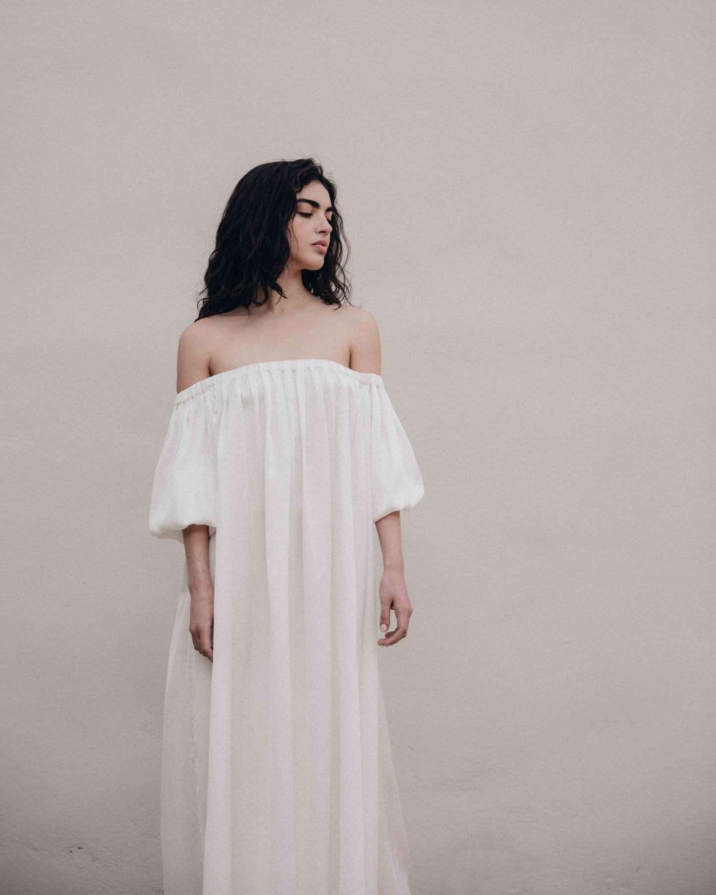 • schulterfreies, langes Kleid