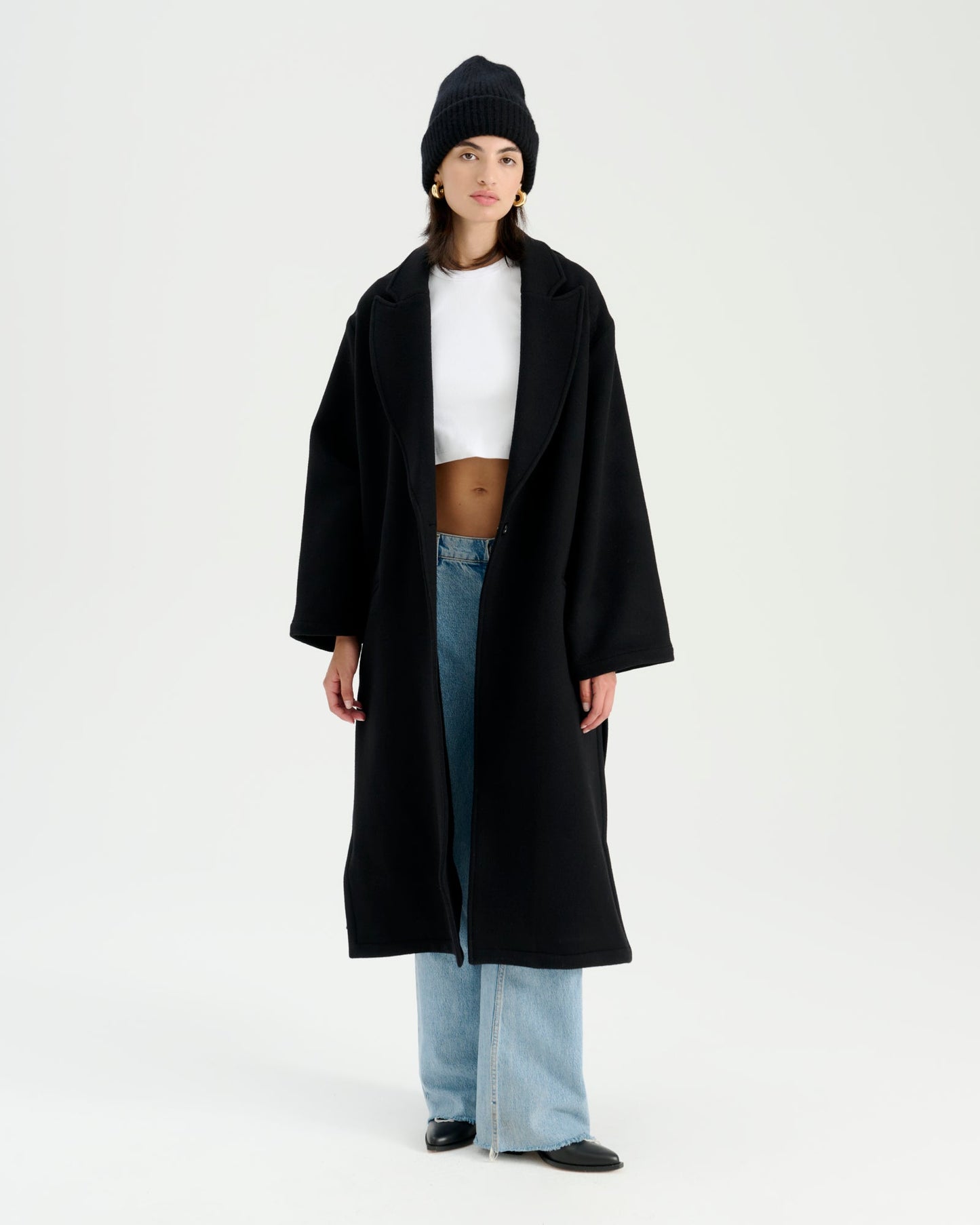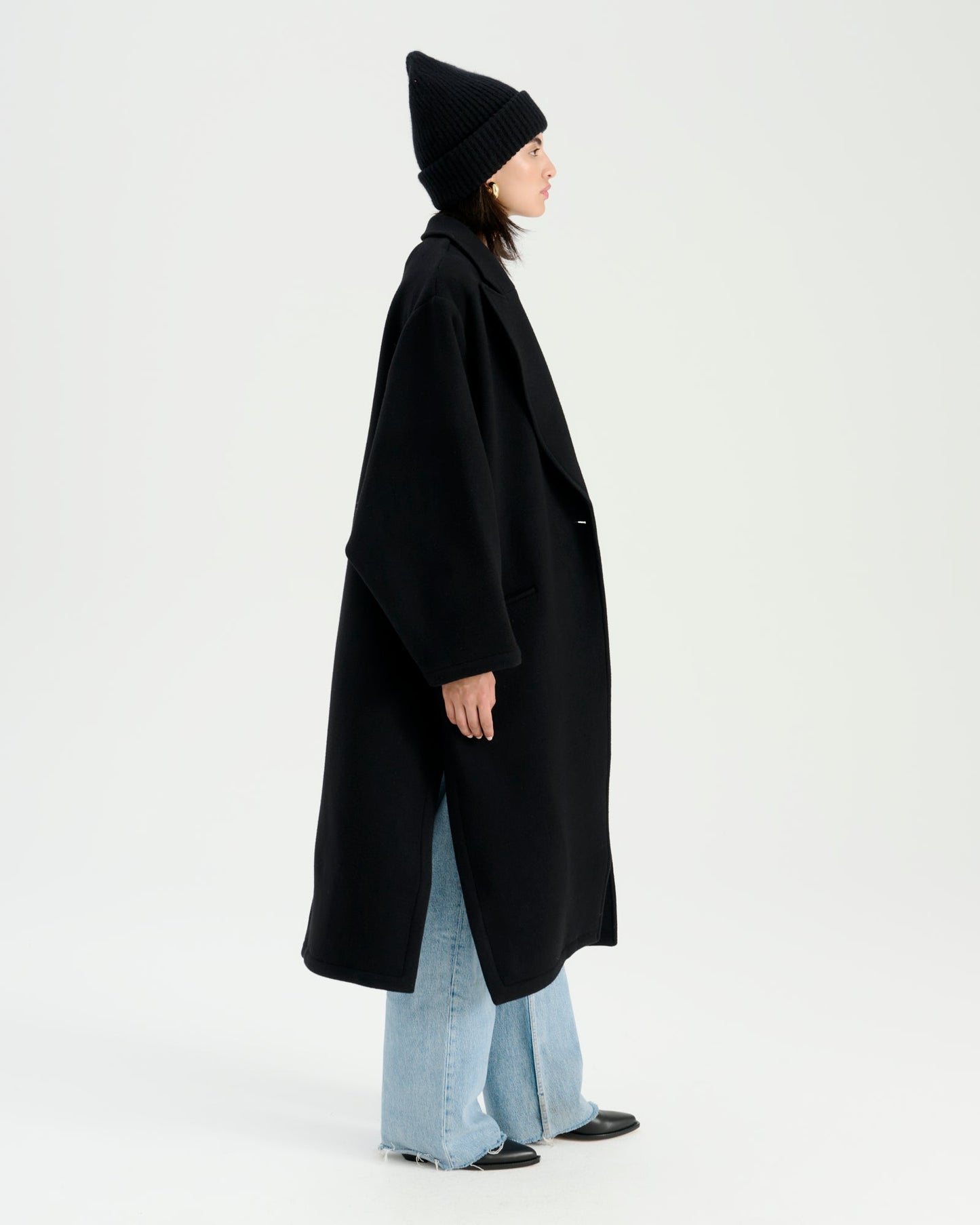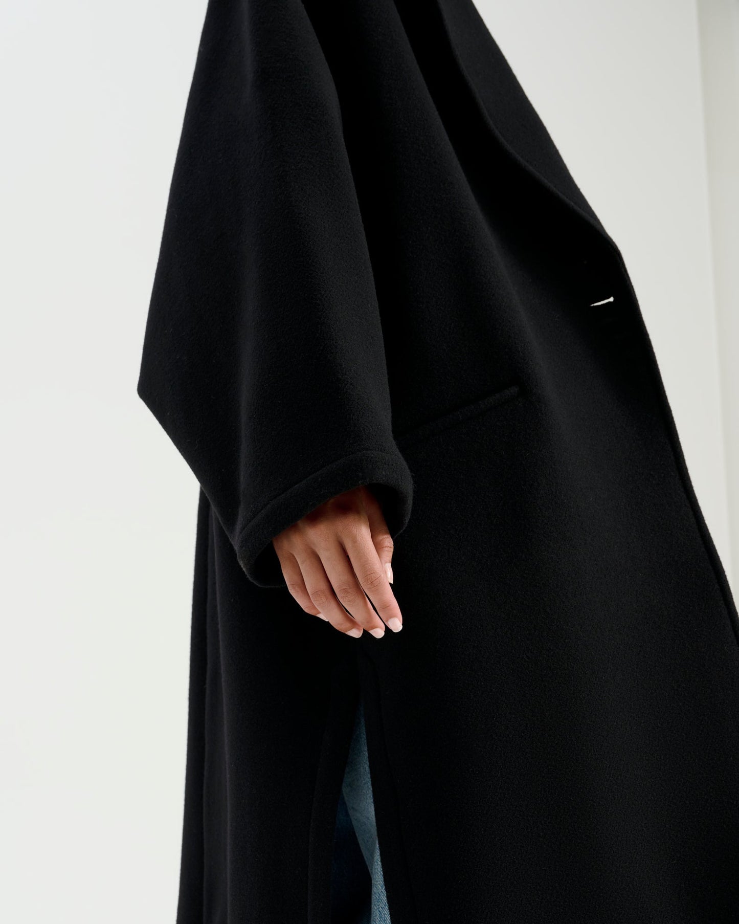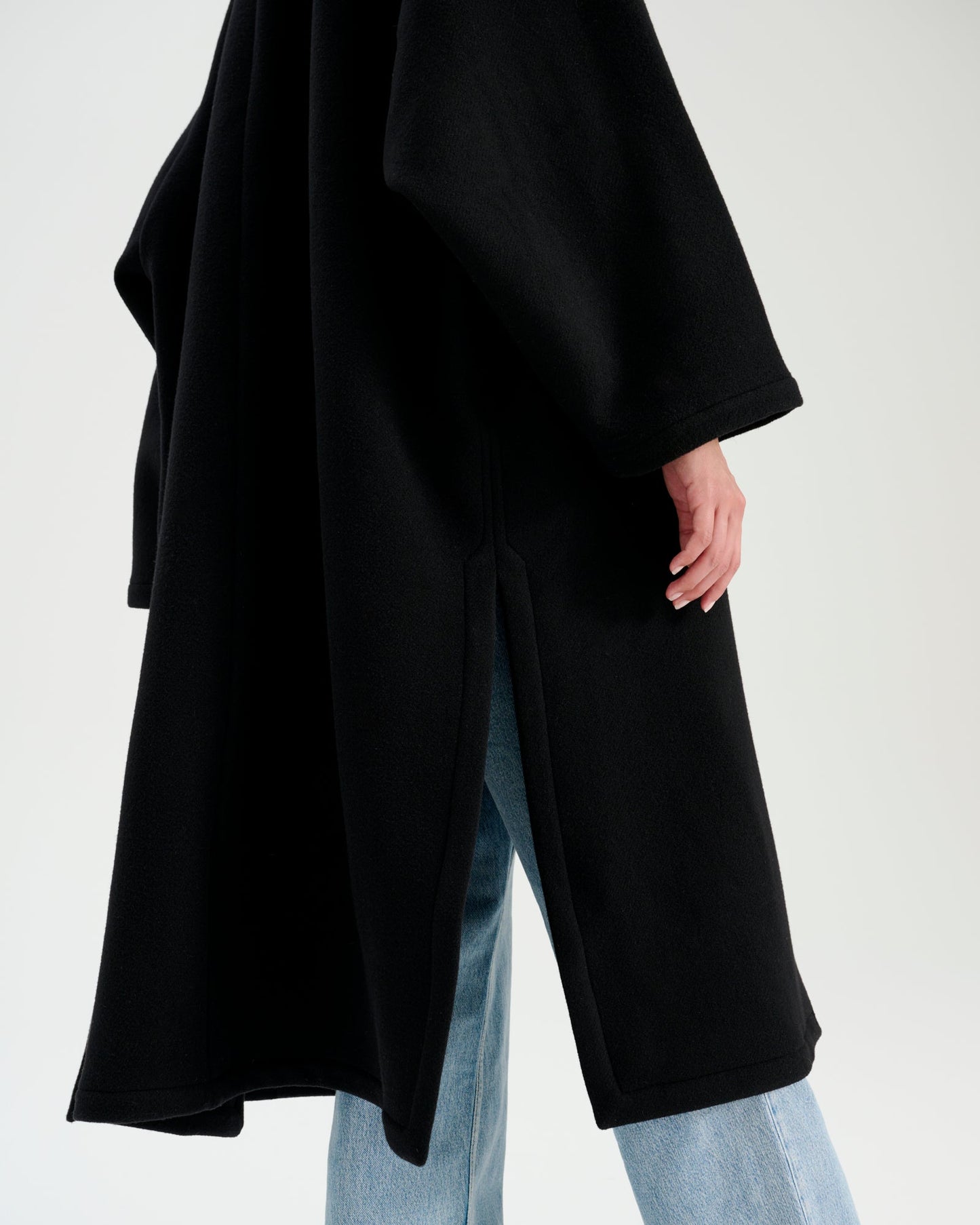 • weit geschnittener Wollmantel