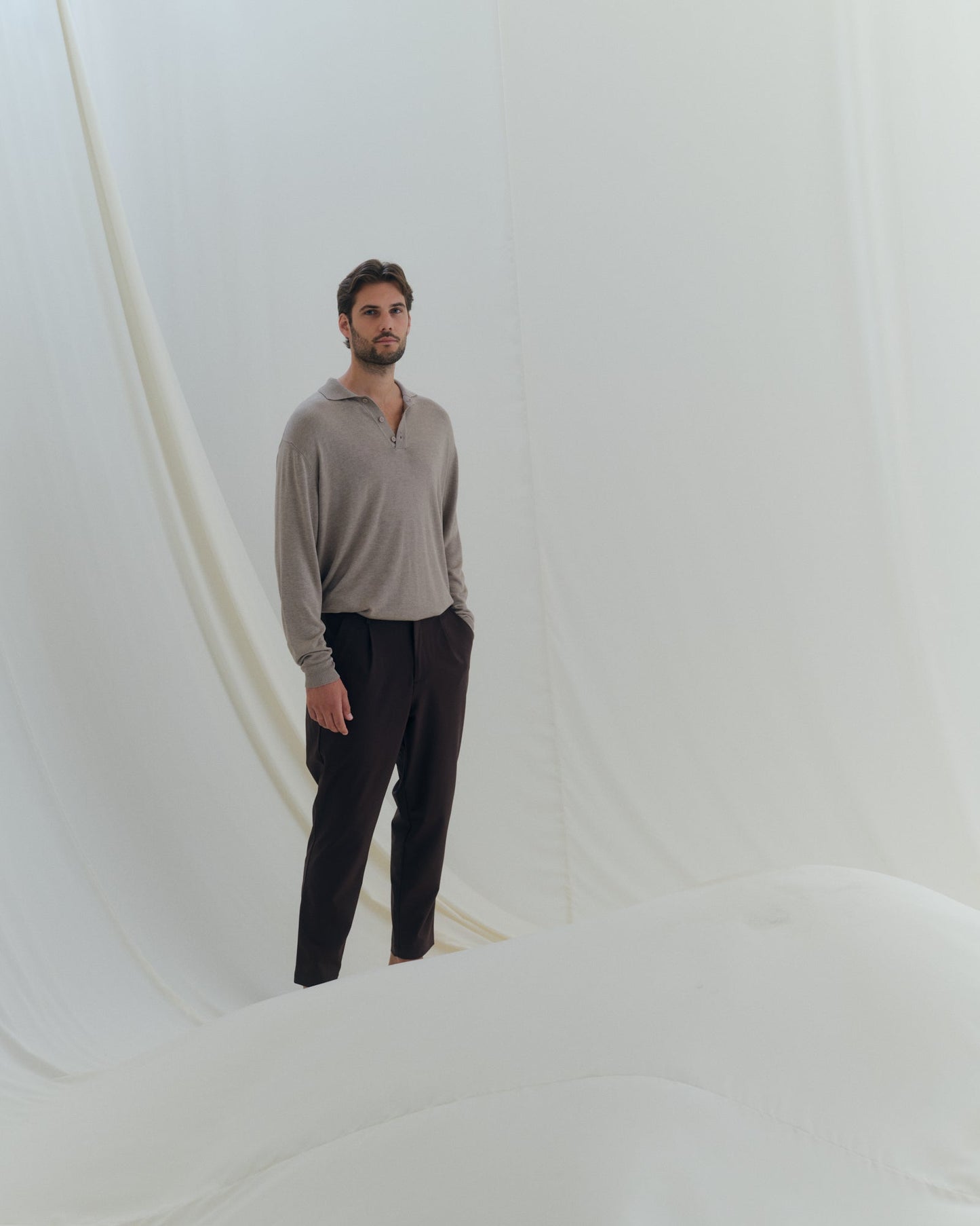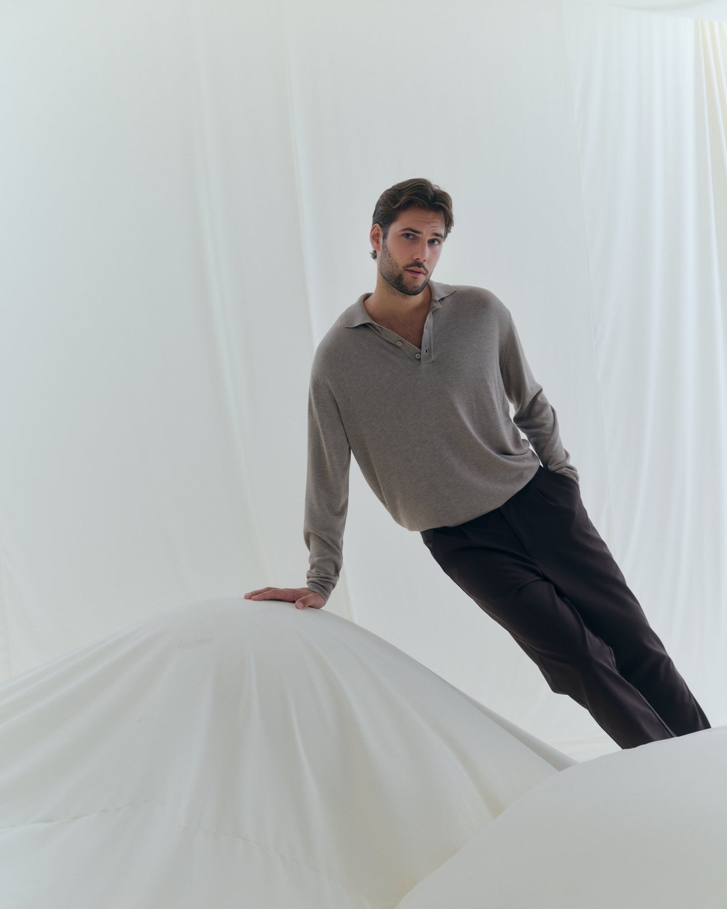 • fein gestricktes, dĂĽnnes Langarm-Poloshirt