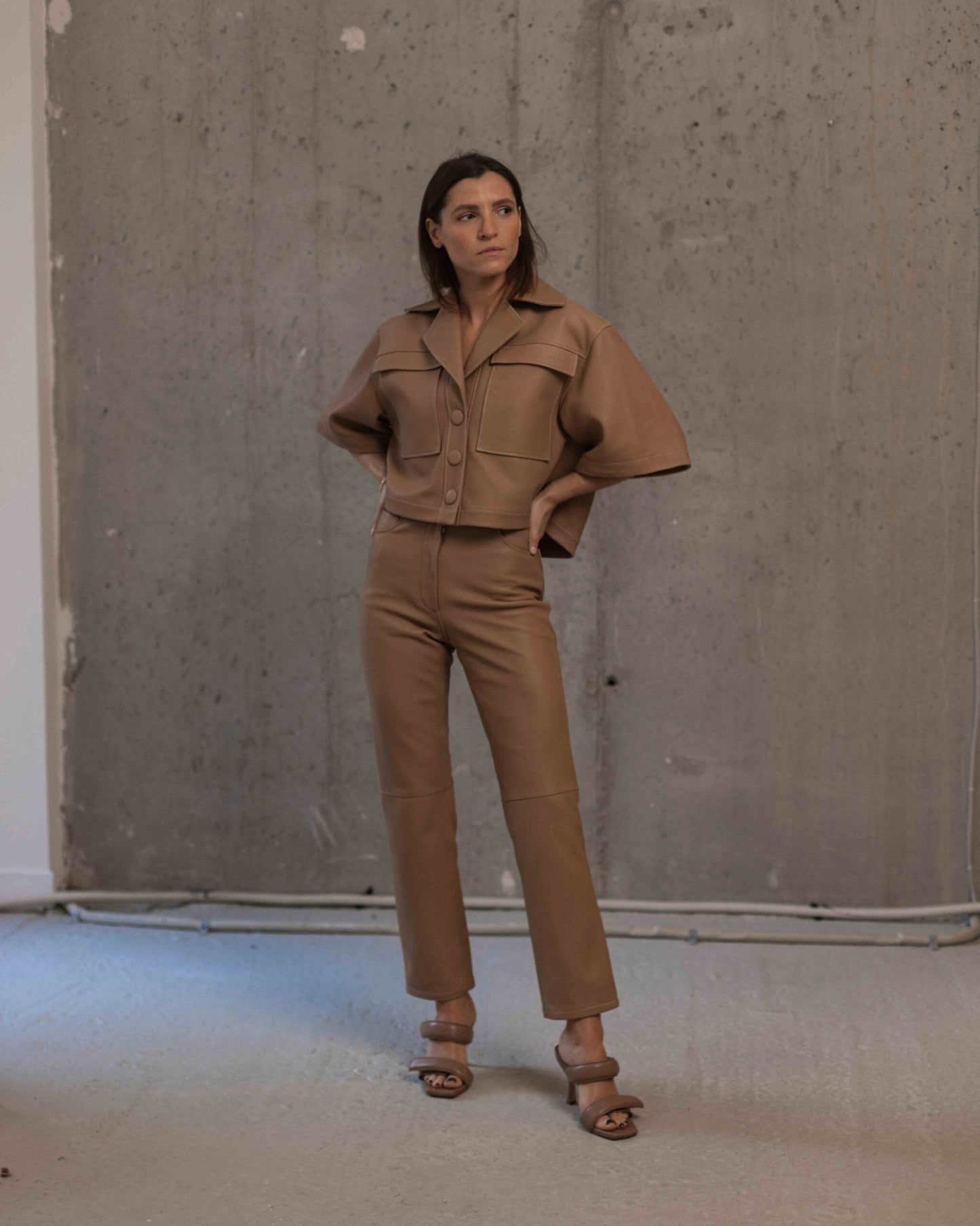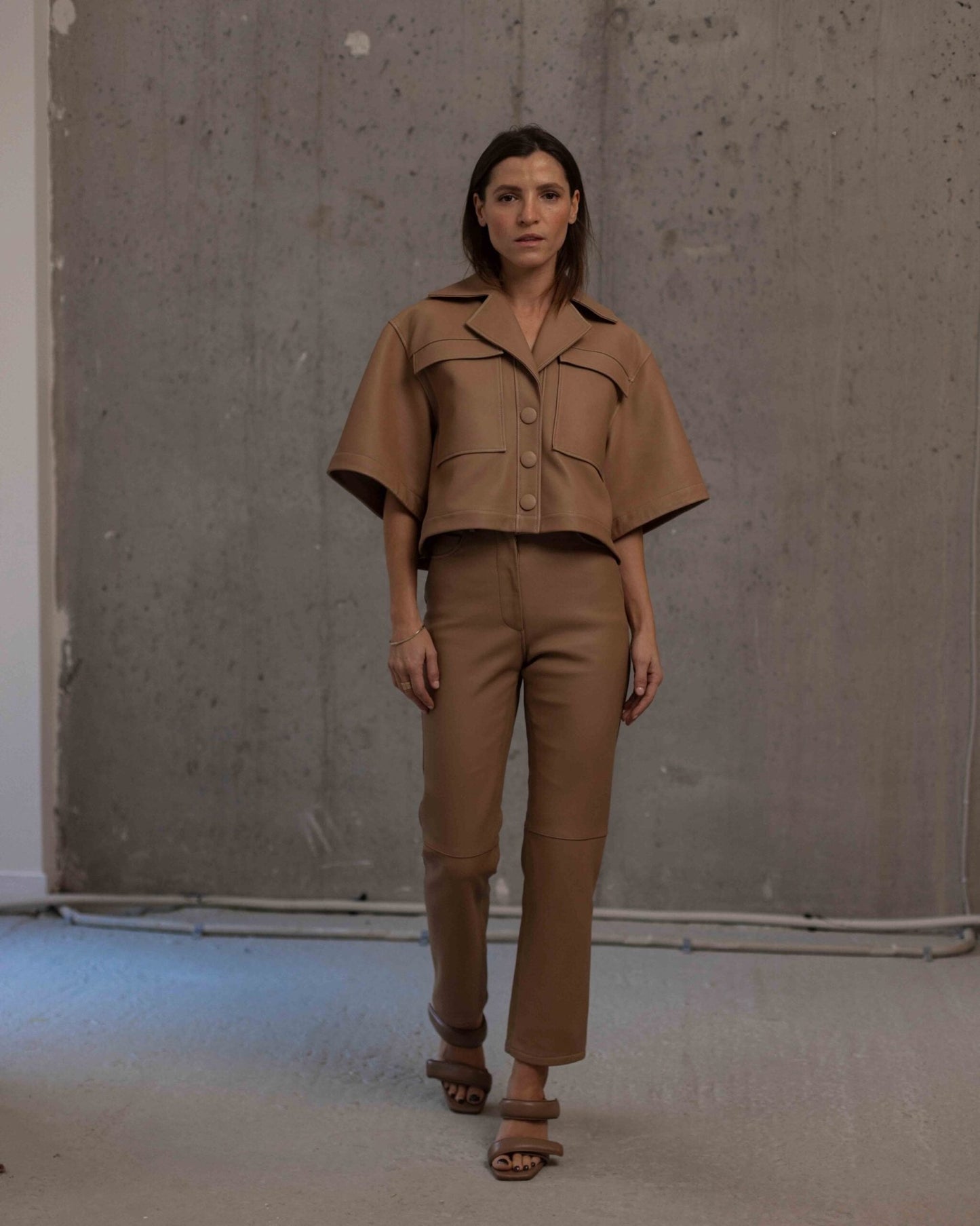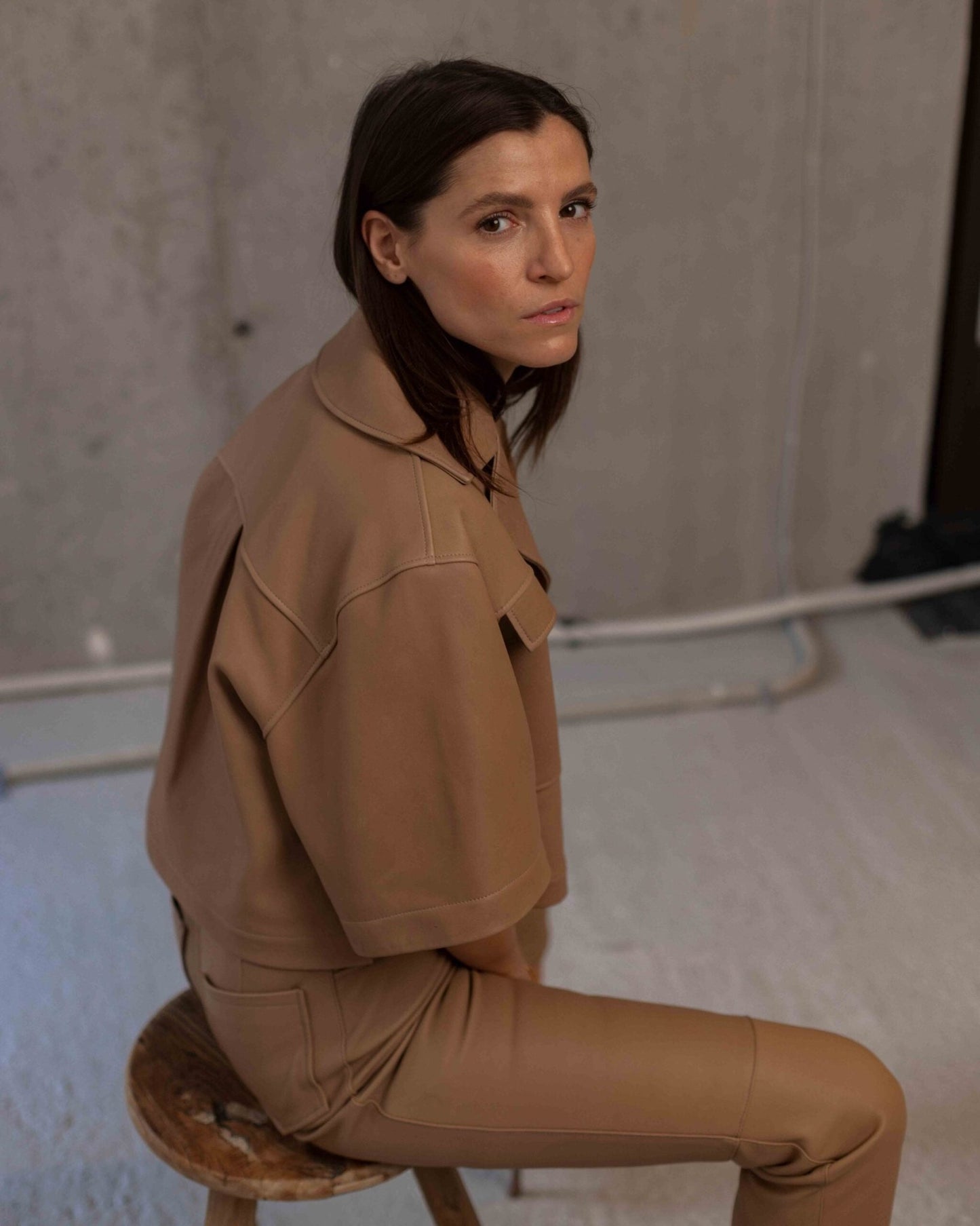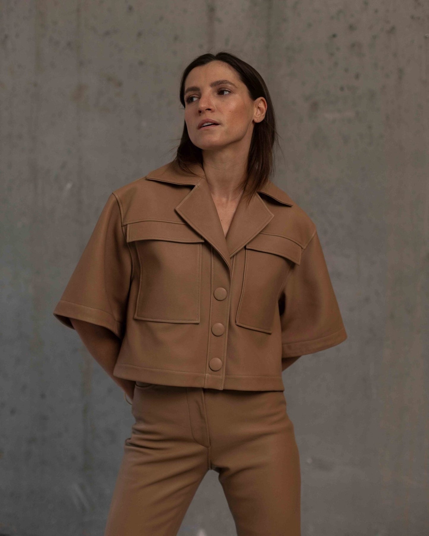 • weit geschnittenes Kurzarm-Lederhemd
