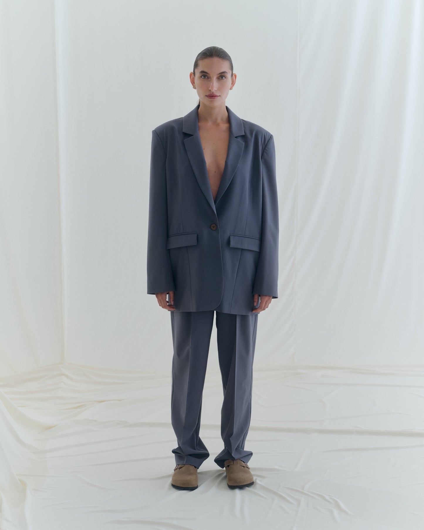 - hinten Paspeltaschen mit einem Knopf aus Kokosnuss-Schale