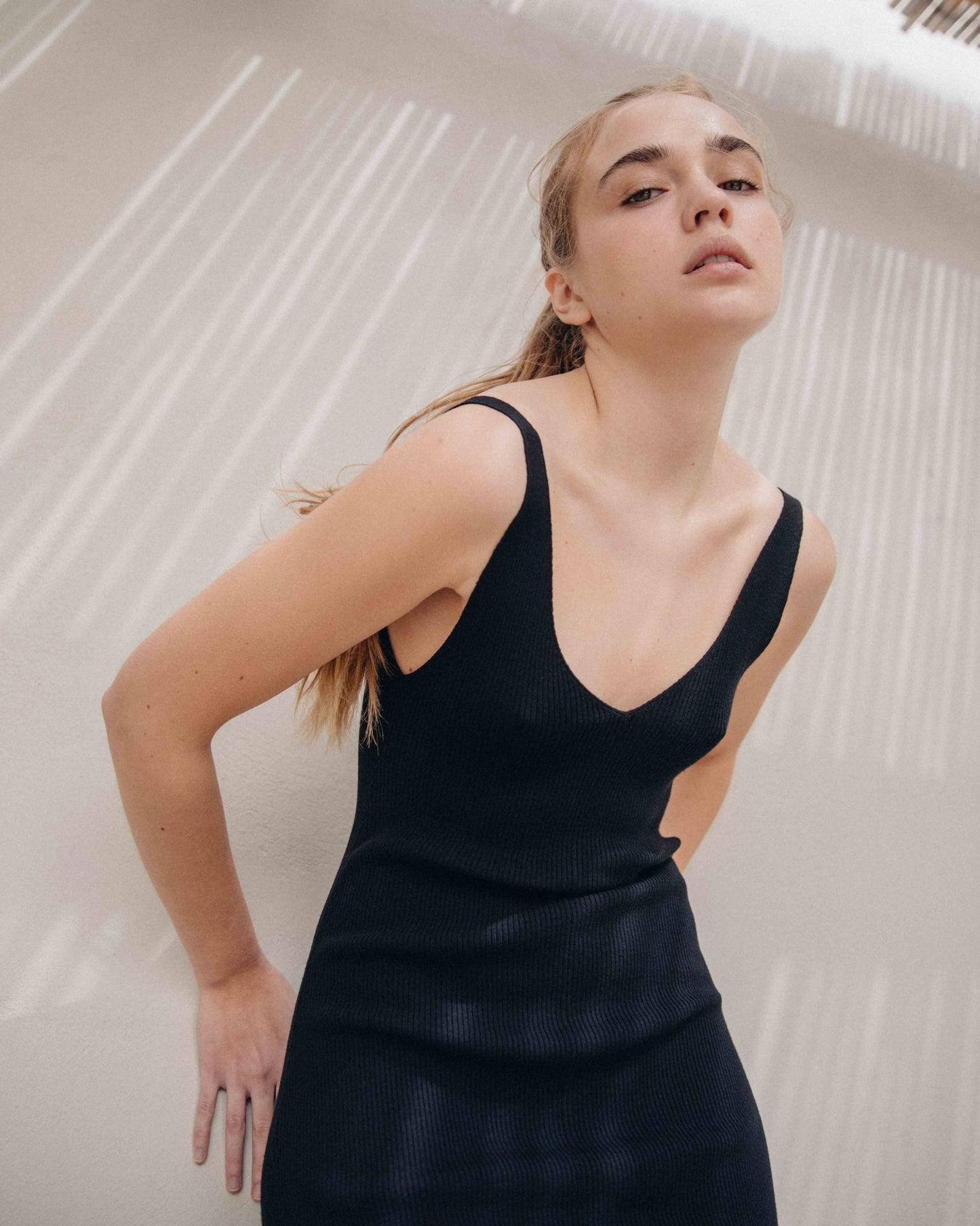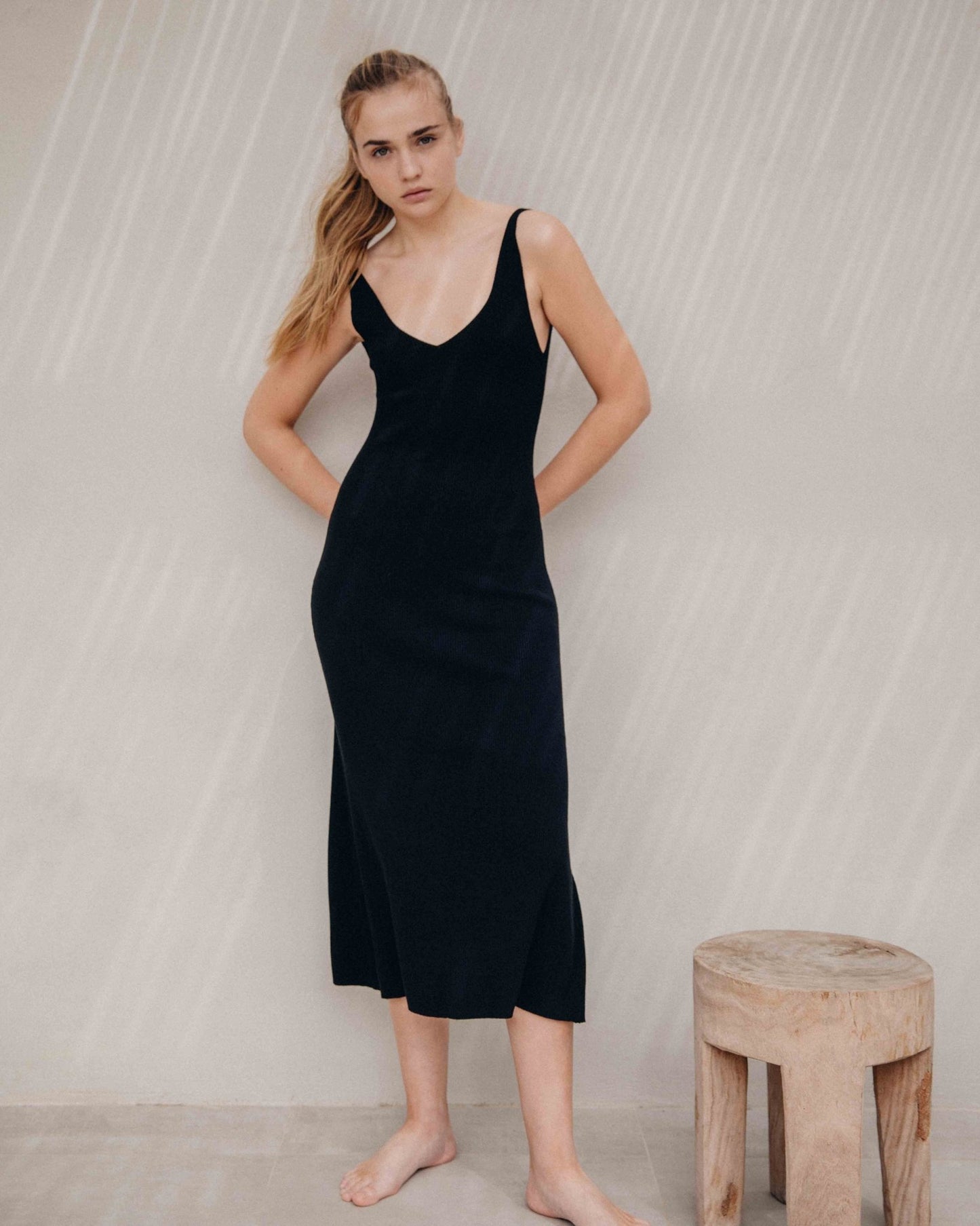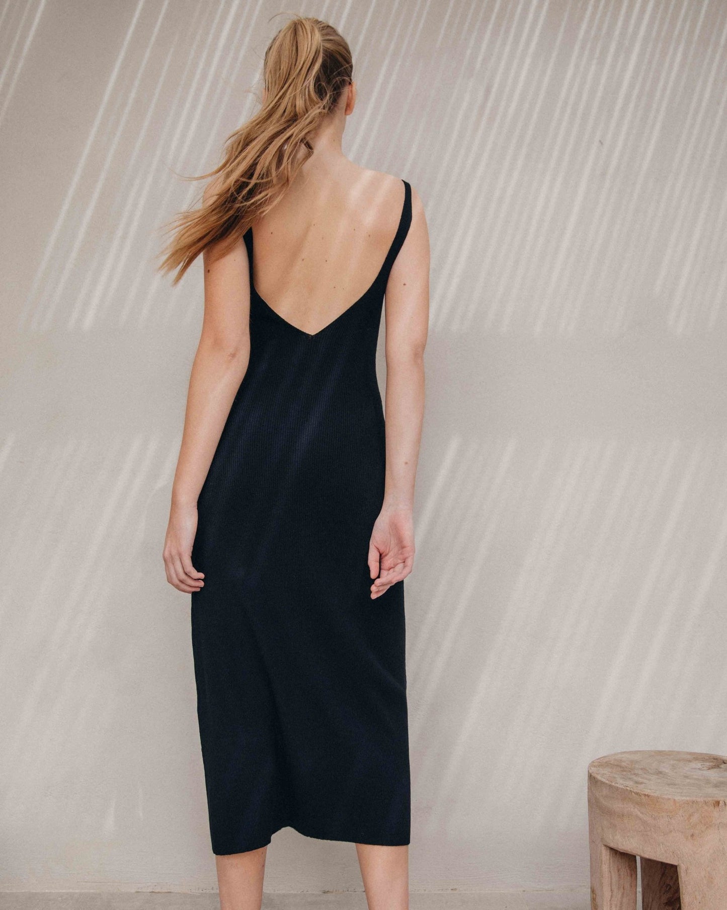 • geripptes Maxi-Strickkleid aus kühlender und atmungsaktiver Viskose