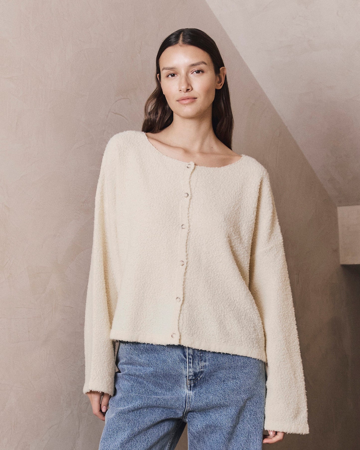 We recommend washing the INÉZ cardigan by hand in a laundry bag, drying it flat and ironing it at a low temperature. It is not suitable for tumble drying.