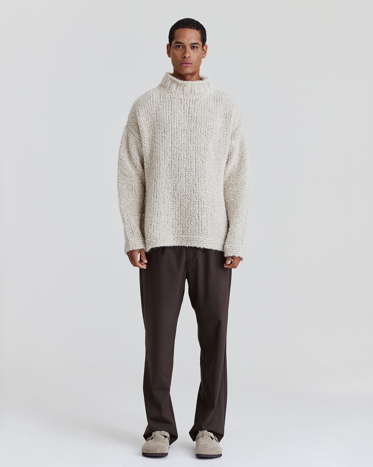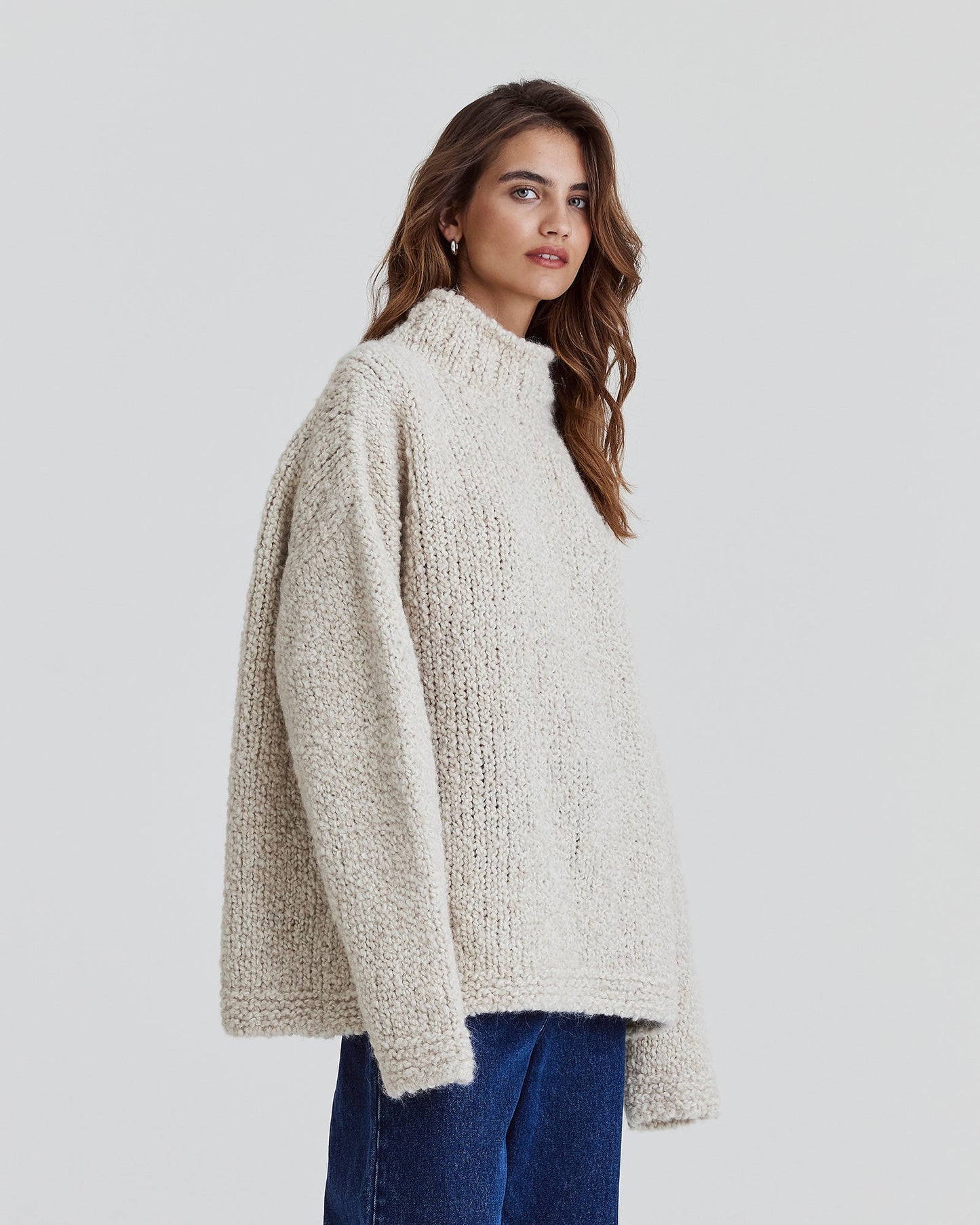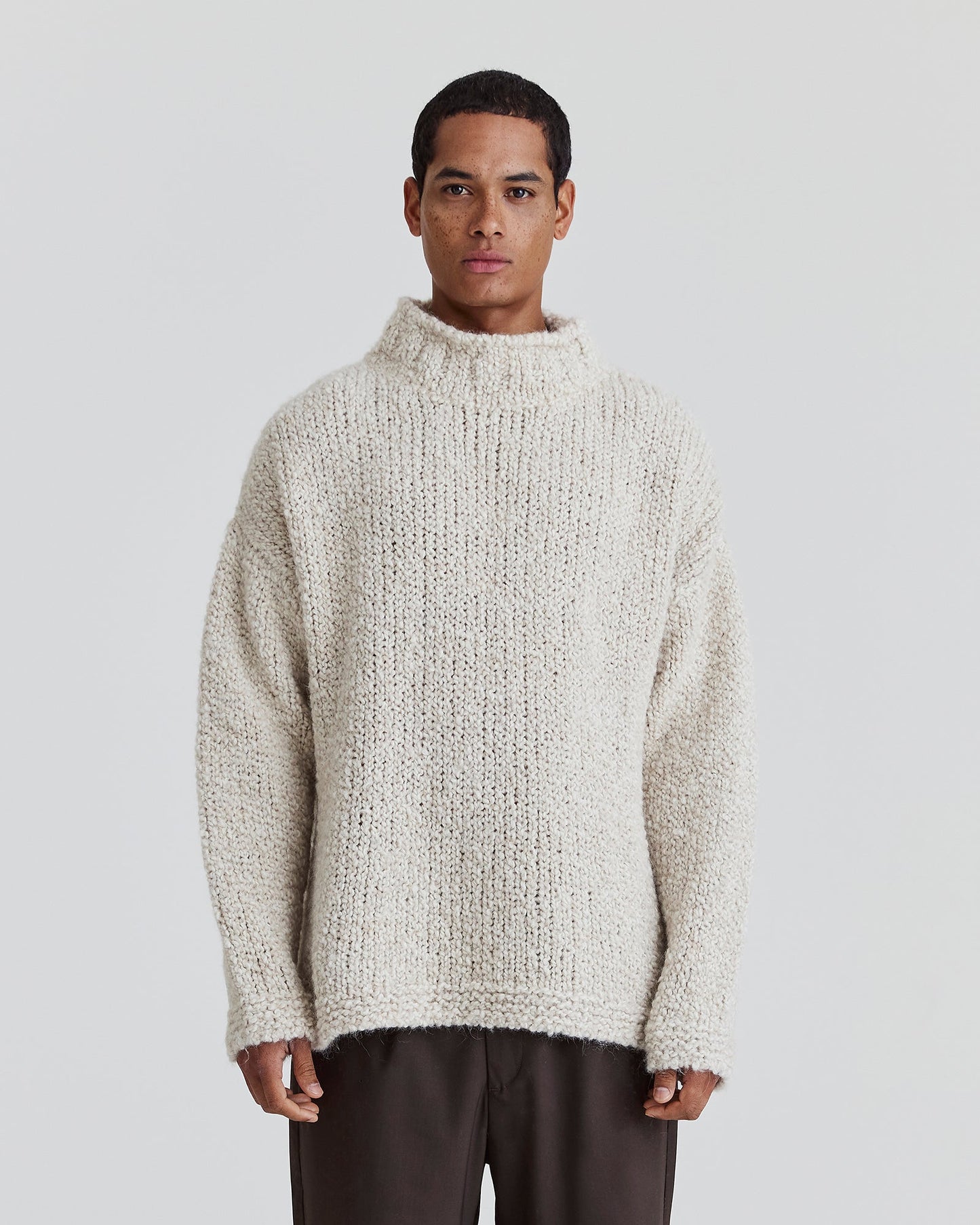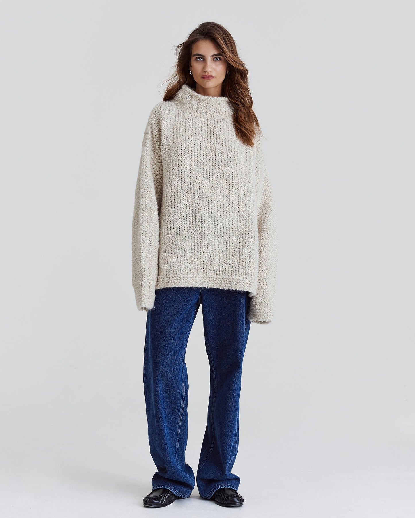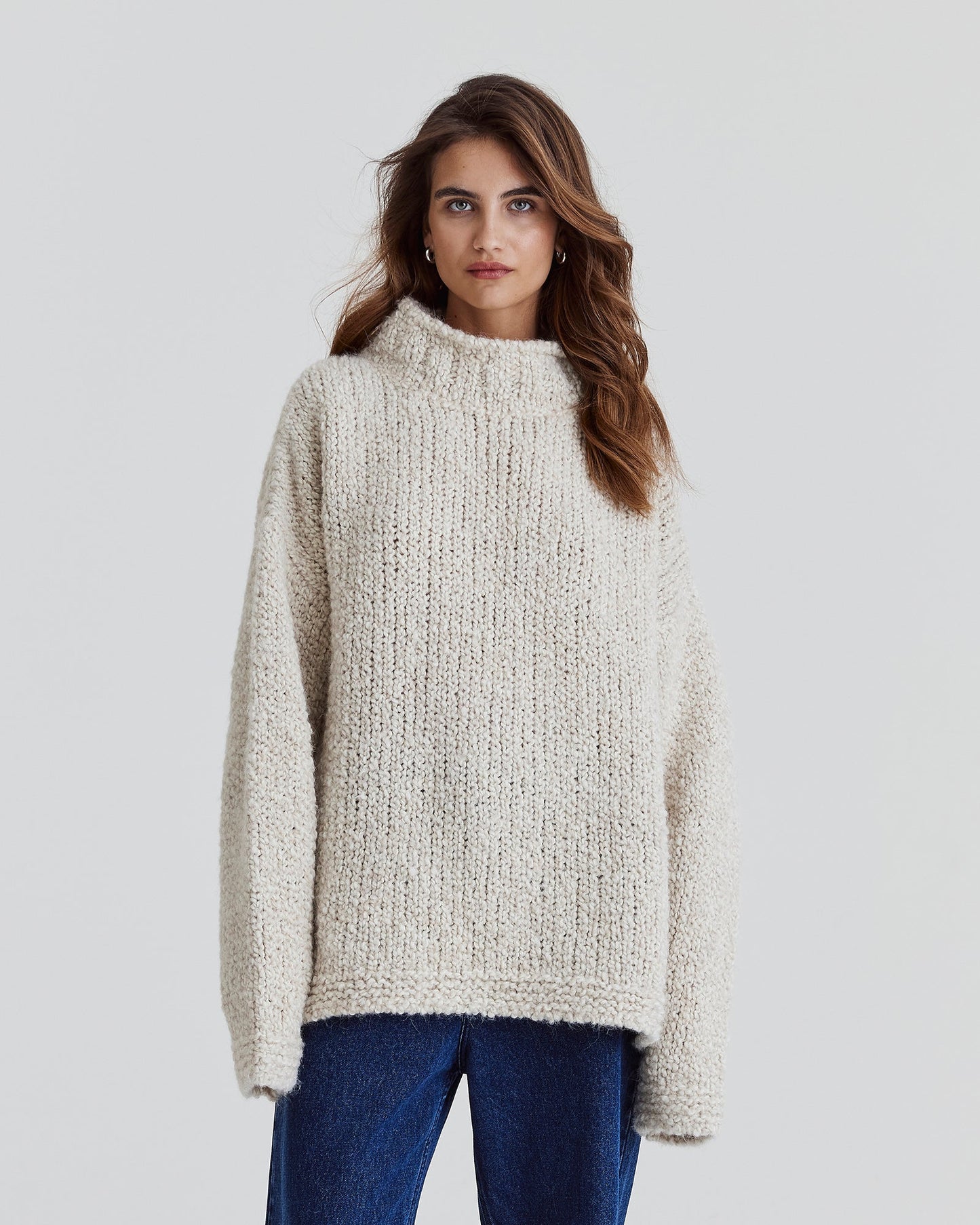 We recommend hand-washing the GRANNY sweater. It's best to wash it infrequently, as the yarns have a self-cleaning ability due to their natural fiber structure, so airing the product is usually sufficient. Airing it out in the bathroom with the steam created by showering also works well.