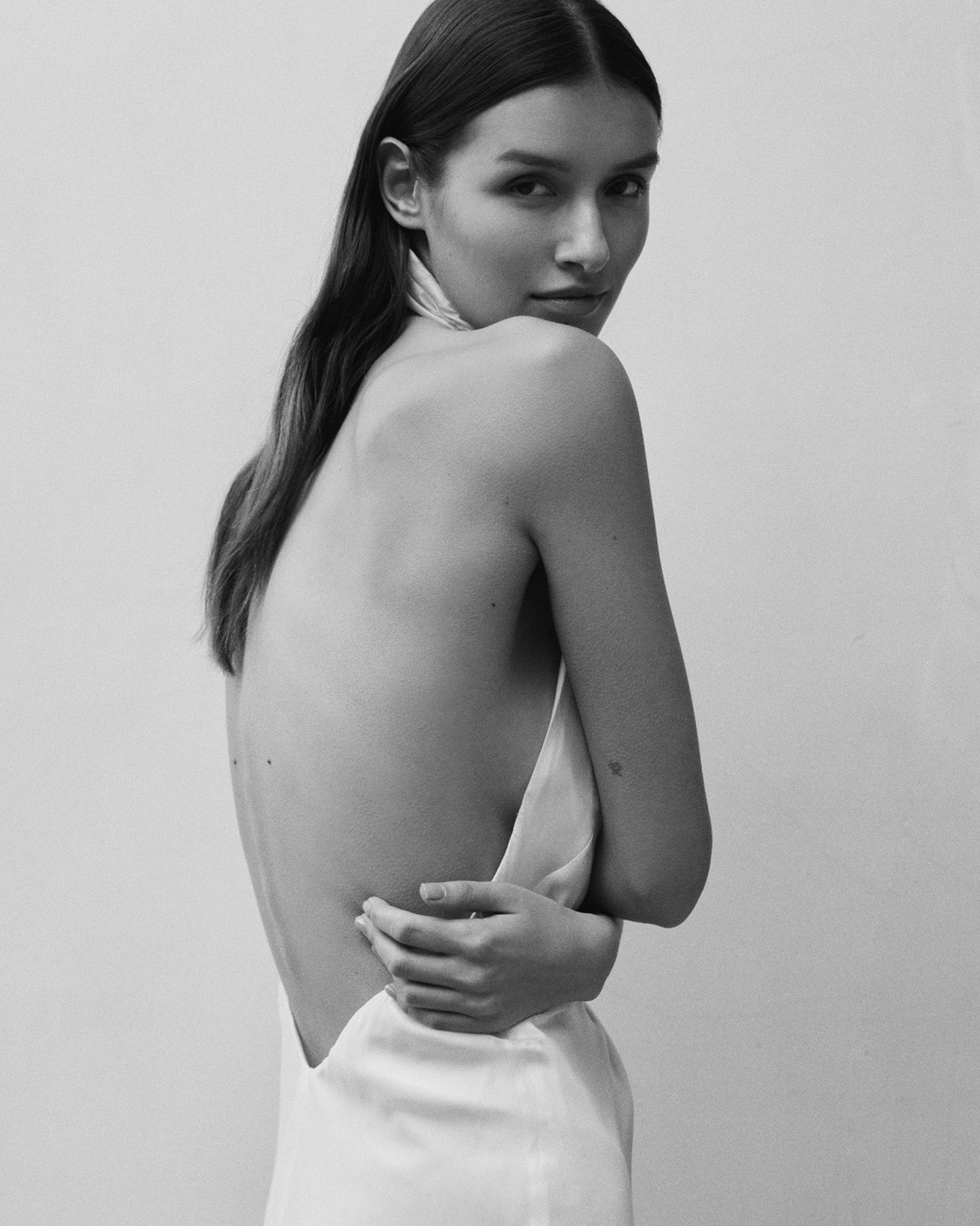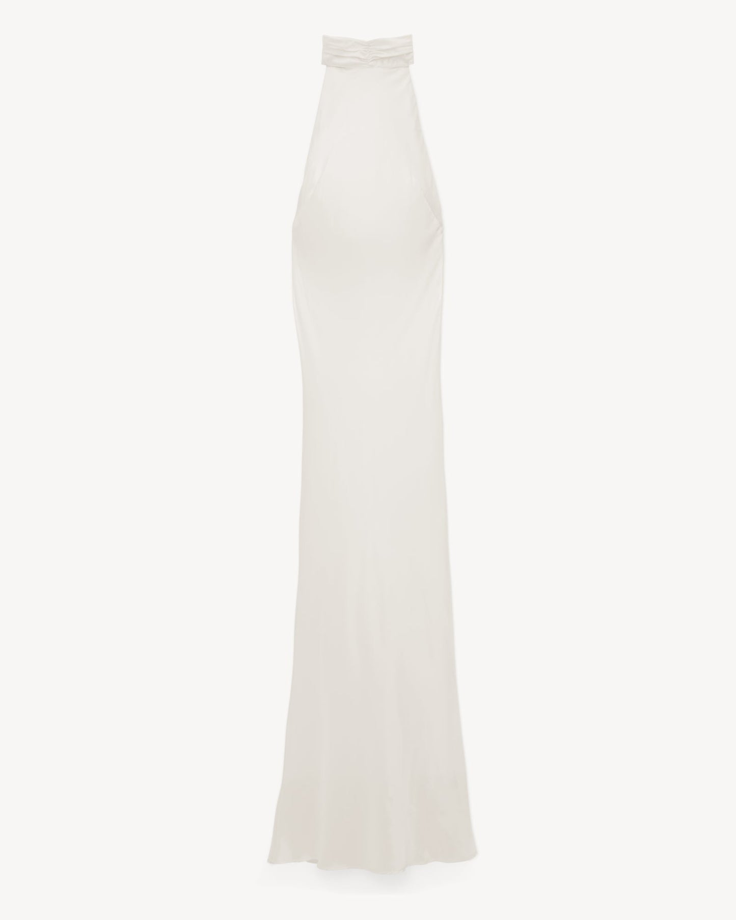 Da Cupro ein empfindlicher Stoff ist, empfehlen wir, das Kleid nur zu steamen und darauf zu achten, dass der Steamer kein Wasser verliert, um Wasserflecken zu vermeiden. Parfüm sollte nur aus größerer Entfernung aufgetragen werden.