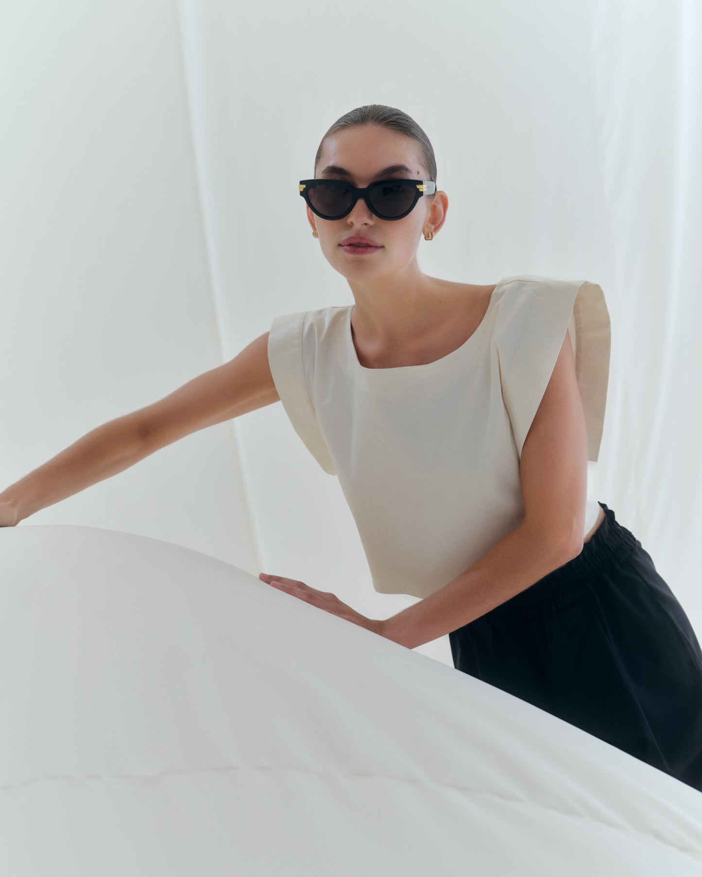 Das Top MONA empfehlen wir nur professionell reinigen zu lassen und bei niedrigster Temperatur zu bügeln. Das Top ist nicht Trockner geeignet.